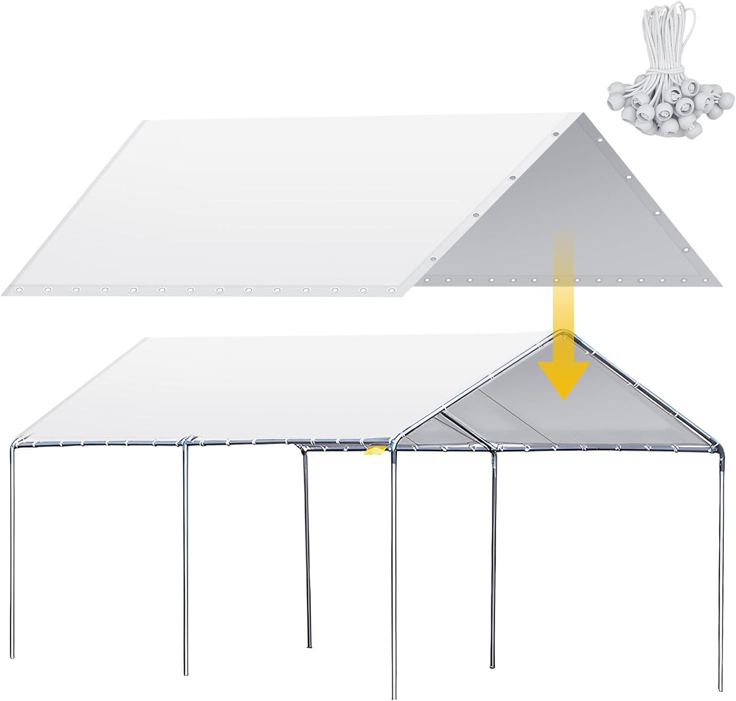10 x 20 ft Heavy Duty Carport Canopy Waterproof Garage Car Shelter Tarp Tent for Car Canopy Replacement Cover with 50 Ball Bungees, Only Top Cover, Frame is Not Included
