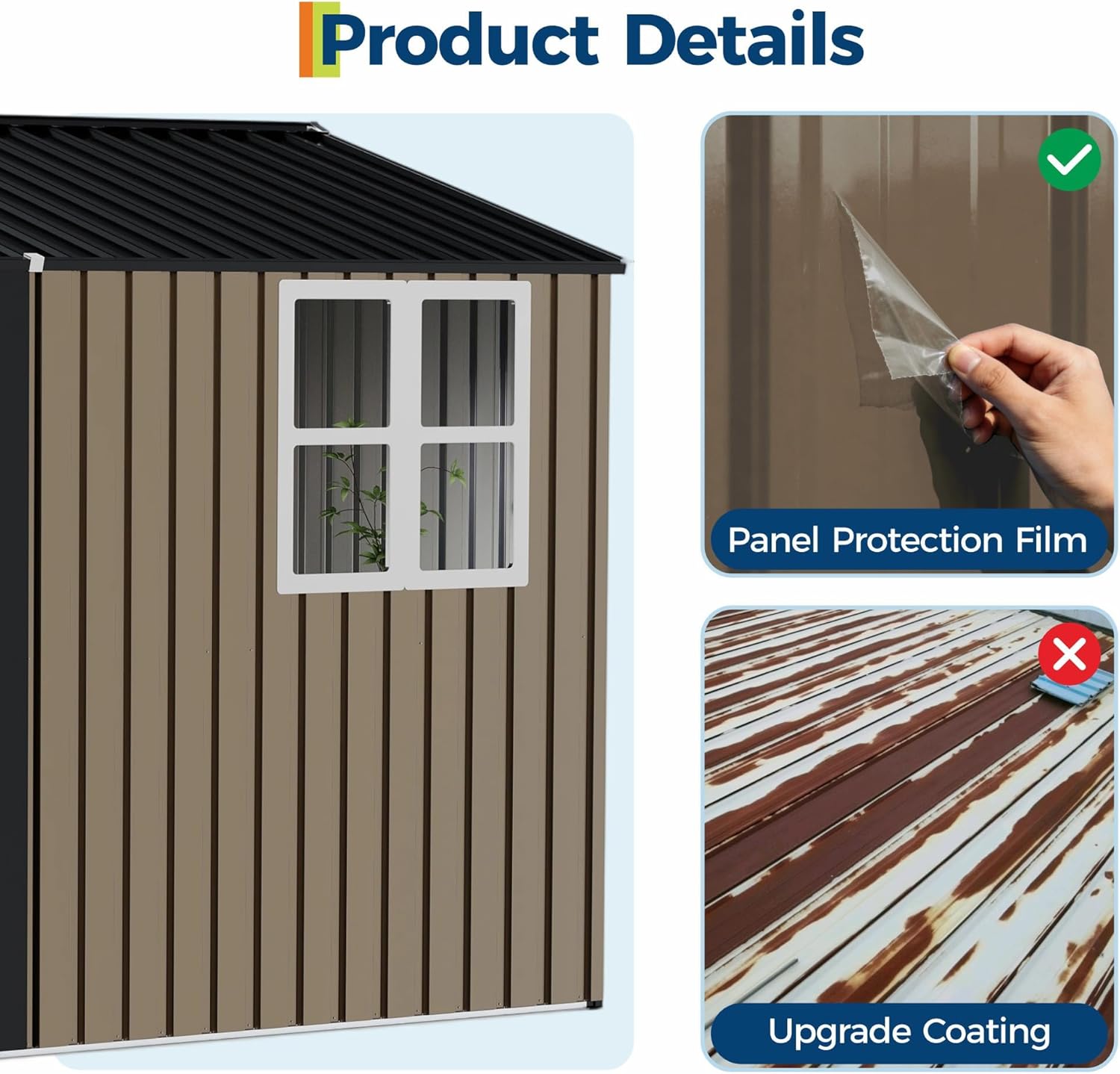 Galvanized steel helps resist rust and corrosion, but remember: “weather-resistant” doesn’t mean “weather-immune.” You’ll want to keep an eye on seams, treat any scratches where the protective film got torn, and ensure the shed is anchored and slightly elevated from direct soil contact to avoid moisture wicking under the panels.