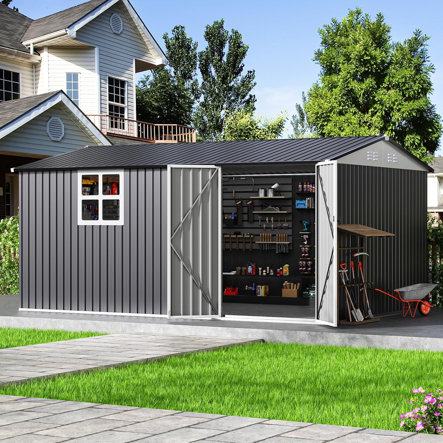 You’ll be surprised how much you can store. The internal volume supports large lawn mowers, kayaks (depending on their shape), and a stack of bins that could contain most of your childhood nostalgia and half your seasonal décor.