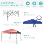 - With the one-button push setup design, you can have the canopy tent up and running in just a minute.