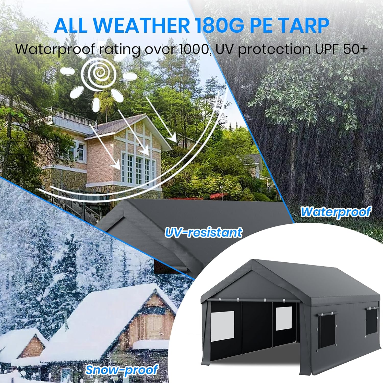 Carport 10x20 FT Heavy Duty,Outdoor Portable Garage with Removable Sidewalls & Doors, Waterproof, UV-Resistant Canopy Shelter for Vehicles, Boats, RVs,