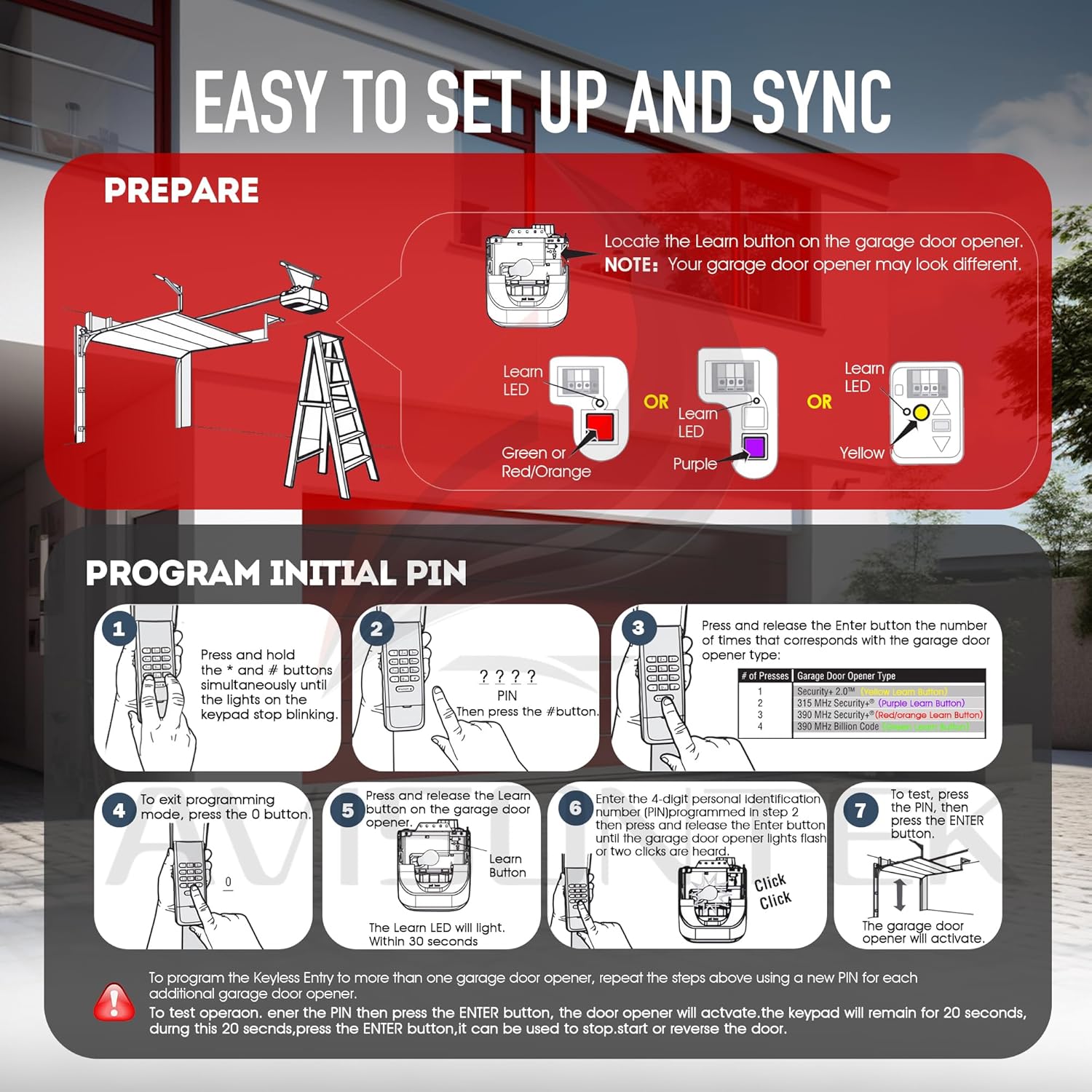 You’ve probably dealt with countless gadgets that claim to work with everything under the sun, only to find out they’re more selective than an exclusive club. The beauty of this keypad lies in its compatibility list. It works seamlessly with garage door openers that have a yellow, purple, red, orange, or green Learn Button—all built from 1993 to the current model.