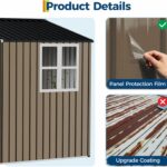 Greesum 6×4FT Outdoor Storage Shed, Metal Patio Storaged Sheds with Lockable Doors, Sheds & Outdoor Storage for Bike, Backyard, Pool and Garden, Brown