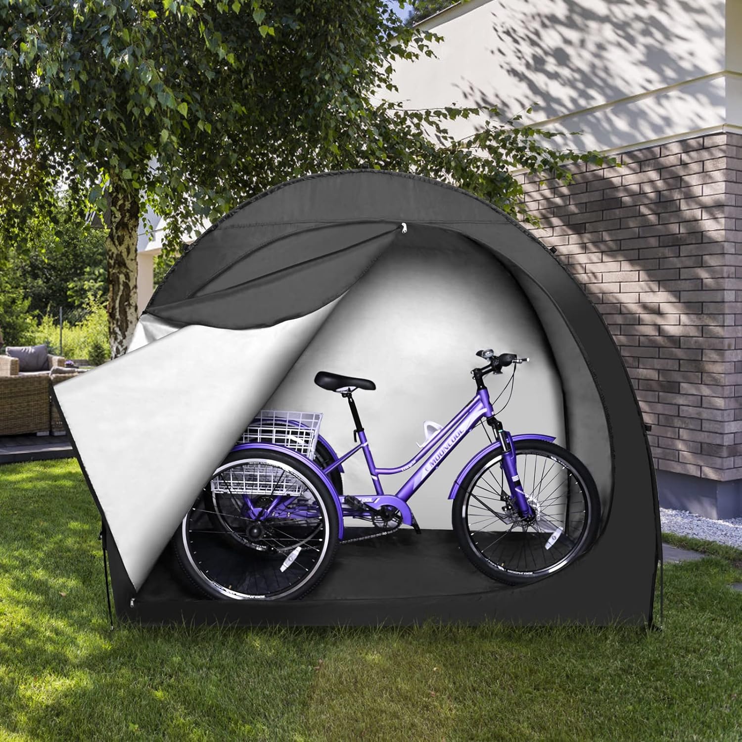 Find your new HZT Bike Storage Tent, Patio Storage Shed, Outdoor Storage Cover for Bicycle Lawn Mower Garden Tools, Waterproof Bike Storage Tent Shelter (Ridge Black, 230D Oxford) on this page.