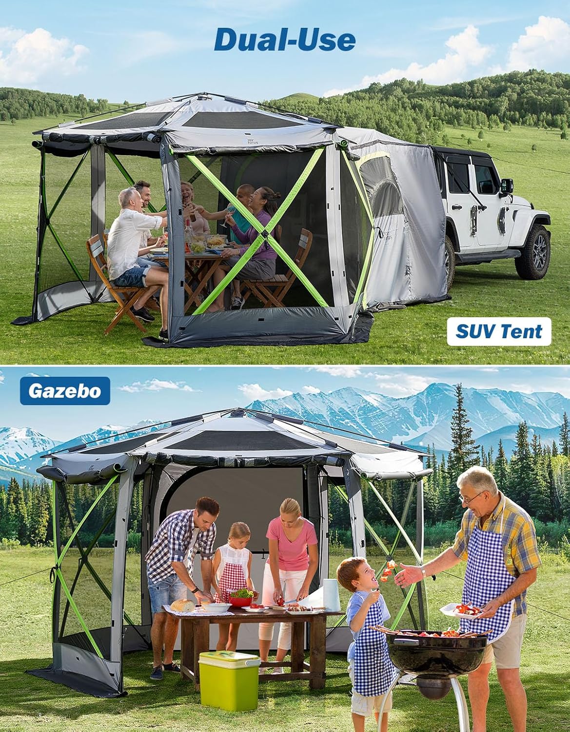 JOYTUTUS Dual-Use Pop up SUV Tent for Camping, 11x11 Ft Outdoor Gazebo Screen Tent, SUV Tailgate Tent for Family Vehicle Camping, Canopy Shelter Portable Carry Bag