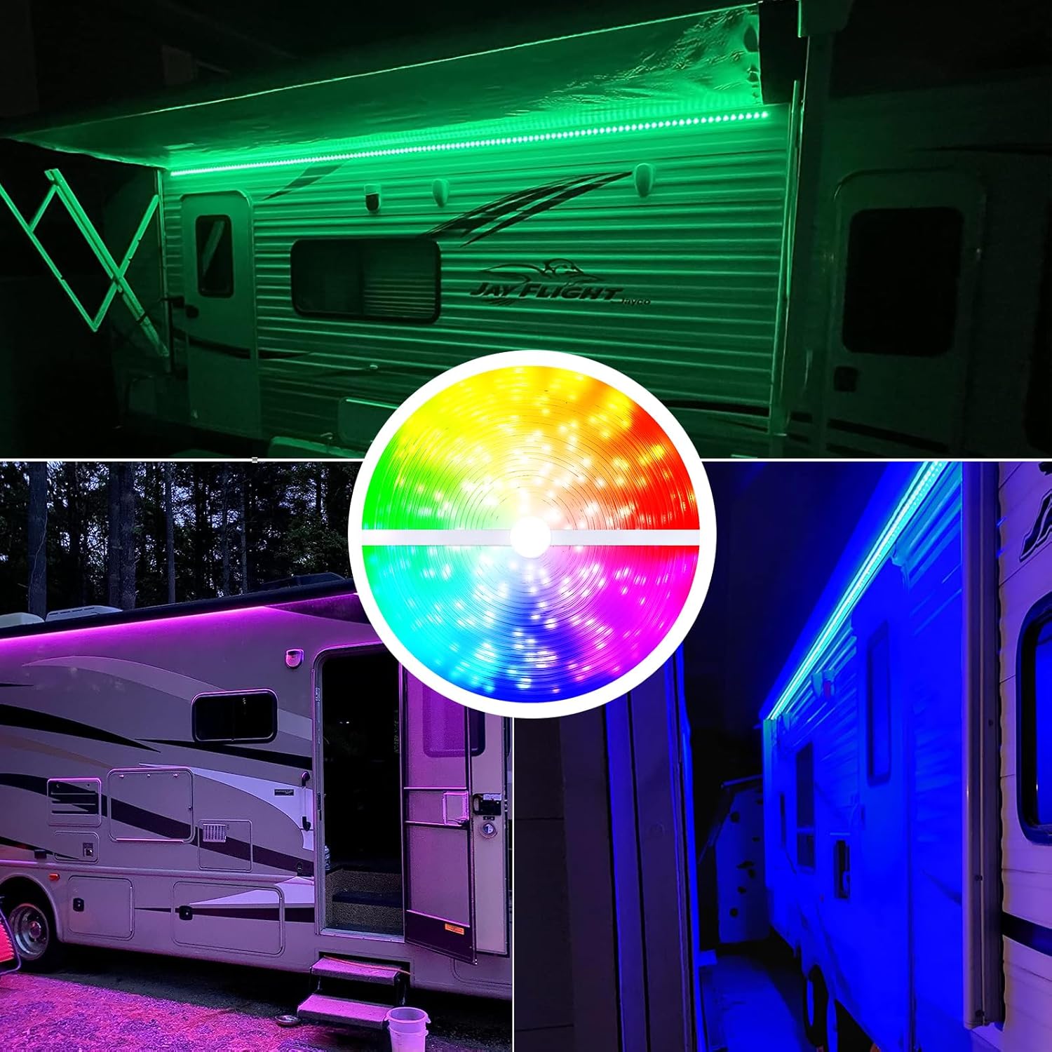 RV Awning Lights, 12V 100FT (2 Rolls of 50ft) RGB RV Camping Awning Lights, IP68 Waterproof LED Lights,RV Exterior Strip Lights for Motorhome Travel Trailer Canopy Party, Stands Food Trucks