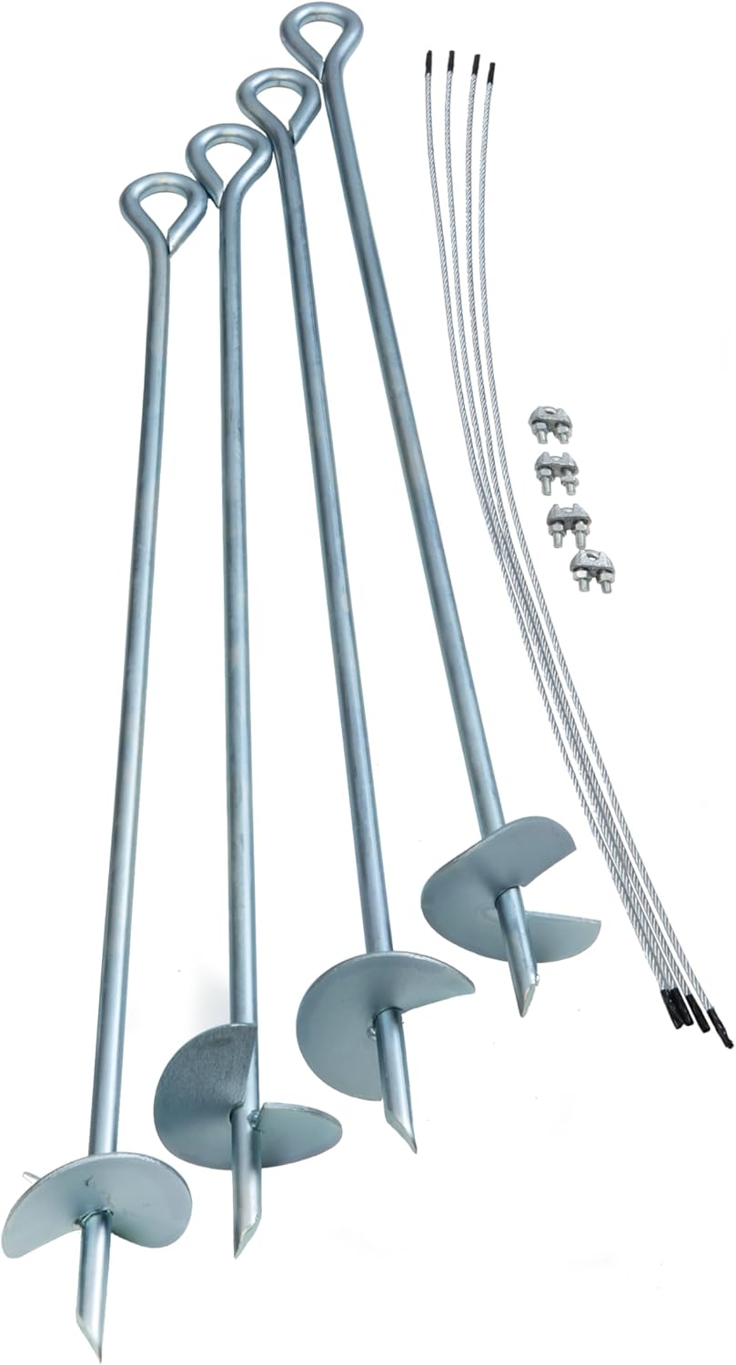 ShelterLogic ShelterAuger 4-Piece 30-Inch Reusable Heavy Duty Steel Earth Auger Anchor Kit with 4 Clamp-on Wire Tie-Downs for Anchoring Shelters, Canopies, and Instant Garages, Silver